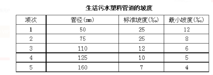 2、生活污水塑料管道的坡度必須符合設(shè)計(jì)要求或下表要求